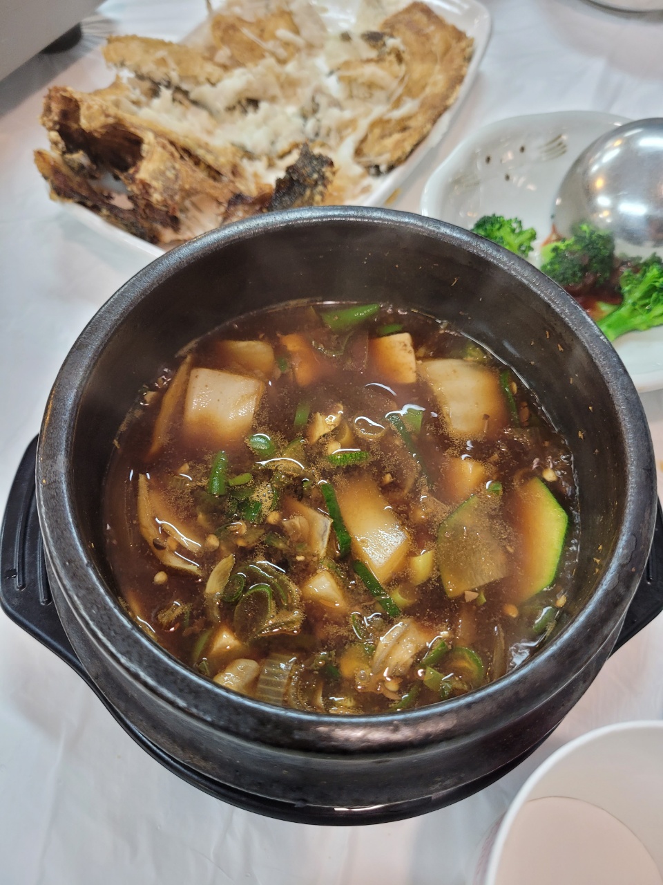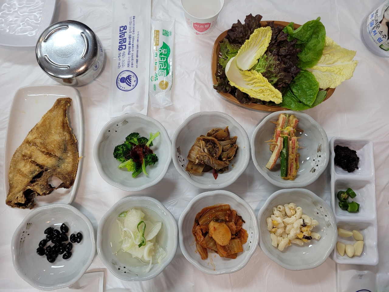 밑반찬이 자극적이지 않고 재료들이 매우 신선하다. 사장님께서 서리태 콩을 직접 재배한다고 한다. 된장도 손수 담근 것이라고 한다. 묵은지 김치, 콩자반, 그 외 모두 깔끔하고 특색 있다. 가자미 구이도 생선구이 전문점에서 하는 것만큼 괜찮다. 꼬치구이를 반찬으로 본 건 처음이지만 정성이 느껴져서 좋다.