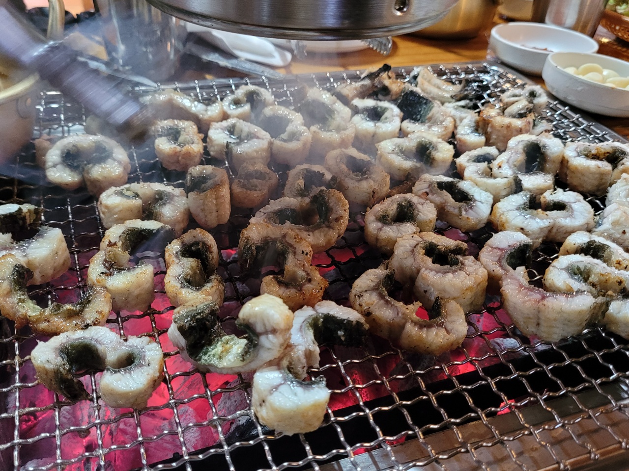 장어를 세워서 구워야 타지 않는다고 한다. 중간중간 직원이 굽는 것을 도와준다.
