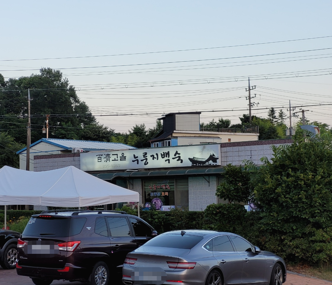 '백제 고을 누룽지 백숙'은 유명한 관광지, 정림사지 5층 석탑 옆에 위치해있다. 위치적으로 석탑 관람 전후에 들리기 좋은 식당이다. 내부는 아담한 편이어서 사람이 조금만 많아져도 바로 만석이다.