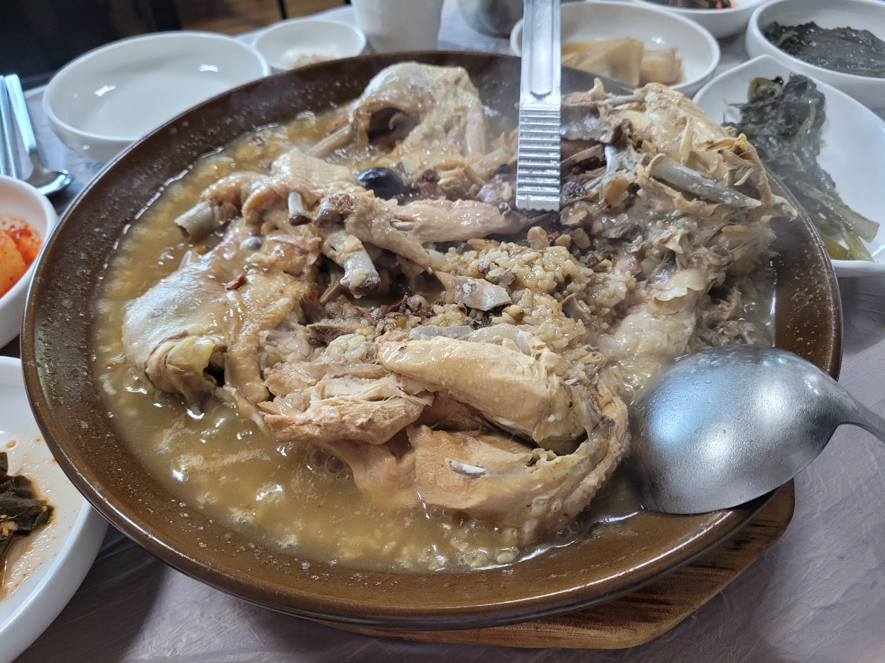 누룽지백숙은 몸보신에 제격인 음식이다. 다 먹으면 온 몸에 온기가 돌면서 피로가 저절로 풀린다.