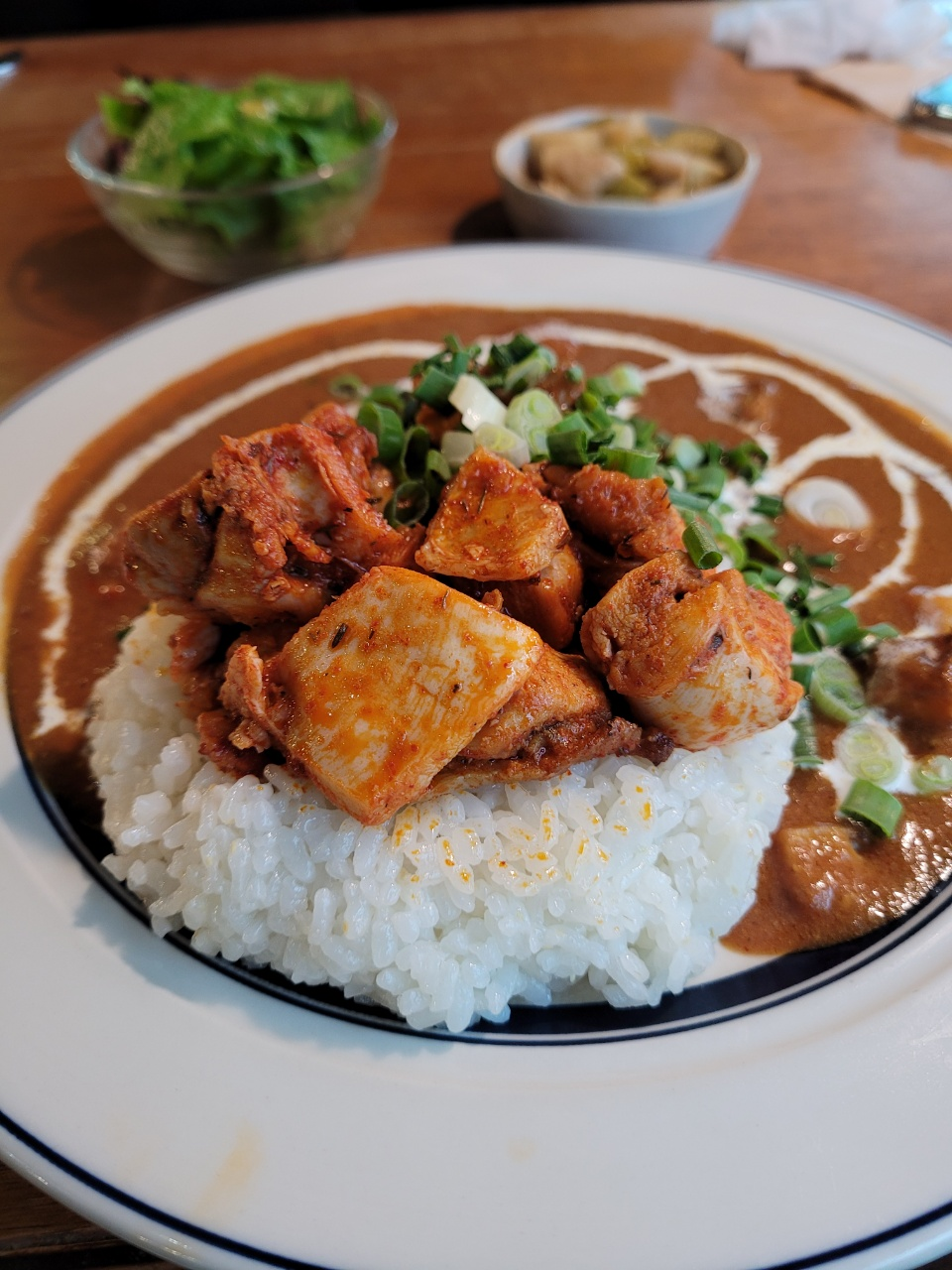 크림이 들어간 부드러운 카레로, 파와 조화가 좋다. 가격이 살짝 비싸다는 생각이 든다. 위생은 보통이다. 제대로 안 닦인 식기가 있다.