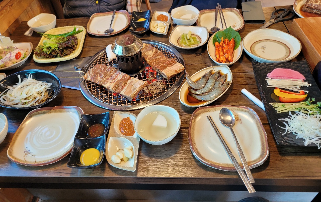 상추, 고추 같은 채소는 셀프바에서 무한으로 갖다 먹을 수 있다. 채소가 싱싱해서 만족스럽다. 양념갈비는 입에서 사르르 녹는다. 가격은 1인분에 4,0000원이다. 비싸다 생각할 수 있지만 다른 식당도 이 정도 가격을 요구하기 때문에 불만 없다.