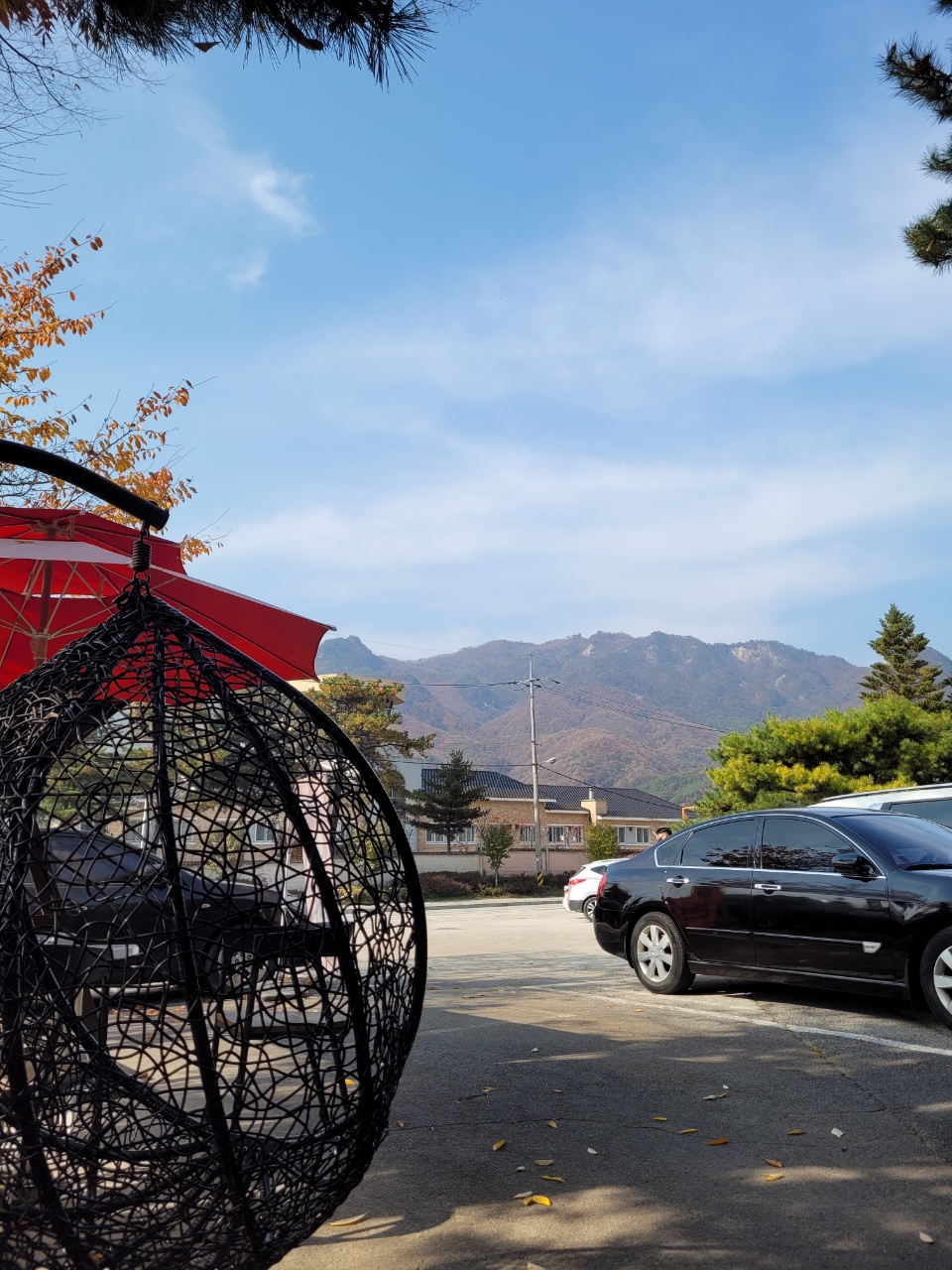 이 식당은 주차장이 넓다. 식당으로 가는 길에 흔들의자가 있는데 멋진 풍경을 감상하라고 놓아둔 듯 싶다.